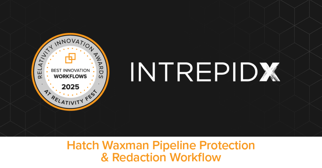 IntrepidX announced today that it has won the 2025 Relativity Innovation Award for Best Innovation: Workflows for its Hatch-Waxman Pipeline Protection & Redaction Workflow, recognized during Relativity Fest in Chicago this week.